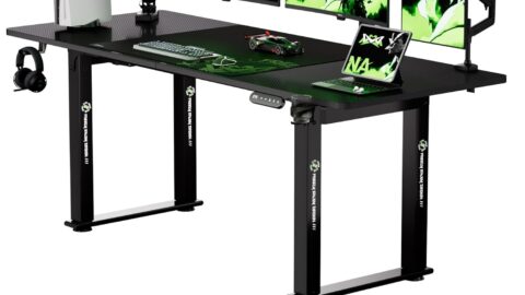 X-Win Electric Height Adjustable Standing Desk, 71″ x 31.5″ Inch 4-Leg Ergonomic Sit to Stand Desk for Home Office, Powerful Dual Motor Work Desk, Carbon Fiber Textured Black