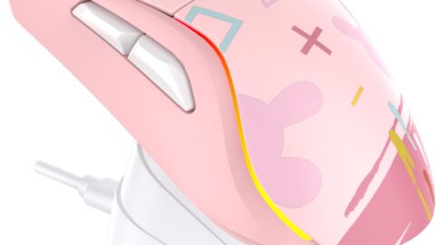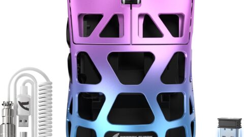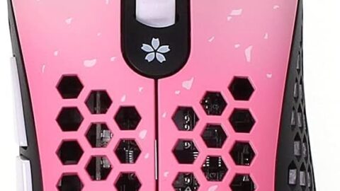 Gwolves Skoll Mini SK-S Sakura 50g Ultralight Weight Honeycomb Design Ergonomic Gaming Mouse with 3389 Sensor – PTFE Skates – 16,000DPI – Detachable Cable (Pink) (Small)