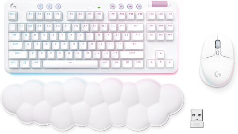 Logitech G Wireless Gaming Combo, G715 Keyboard Clicky + G705 Mouse, Customizable LIGHTSYNC RGB Lighting, Lightspeed Wireless, Bluetooth, PC/Mac/Laptop – White Mist