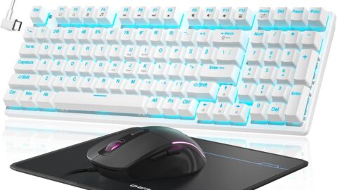Mechanical Gaming Keyboard and Mouse, 98 Keys LED Backlit Keyboard with Floating Keycap, Ergonomic RGB Gaming Mouse with Mouse Pad Combo, Full Anti-Ghost Wired Keyboard for PC Laptop Gamer, White