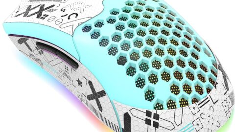 Gwolves Hati HTS Lightweight Honeycomb Wired Gaming Mouse,~48g,3389Sensor,16,000DPI, Low Latency,Anti-Interference,6Programmable Btns,On-Board Memory,PC/Mac and Laptop (Transparent Blue, HTS-Small)