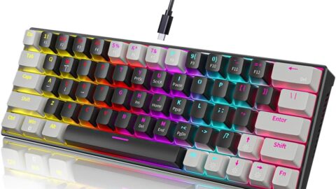 abucow Mechanical Keyboard Wired 60% Gaming Keyboard with Colorful Backlit Custom 63 Swappable keycaps (Black-Gray)