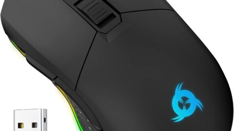 Gaming Mouse Wireless, Super Accurate Tracking at 4800 DPI, Tri-Mode Optical RGB Mouse, 6 Programmable Buttons, 7-Color LED Light, Rechargeable Wireless Mouse for Laptop, PC, Mac