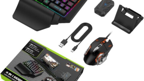 Half Hand Gaming Keyboard and Mouse Combo, 4 in 1 Mobile Game Combo Pack, Mobile Gamepad Controller, One Handed Gaming Keyboard, Mouse Converter, Adjustable Phone Stand