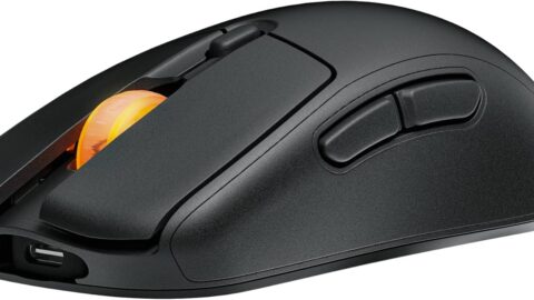 ASUS ROG Keris Wireless AimPoint Gaming Mouse, Tri-mode connectivity (2.4GHz RF, Bluetooth, Wired), 36000 DPI sensor, 5 programmable buttons, ROG SpeedNova, Replaceable switches, Paracord cable, Black