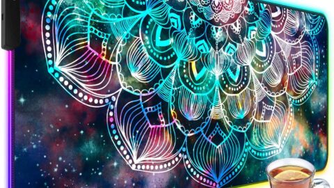 Customized RGB Gaming Mouse Pad and Coffee Coaster,Large Glowing Led Anti-Slip Rubber Base Computer Keyboard Desk Mouse Mat 31.4×11.8 Inch,Mandala in Galaxy