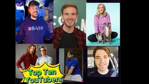 Top 10 YouTubers in the world. PewDiePie, Markiplier, DanTDM, Jenna Marbles, Like Nastya, T-Series.