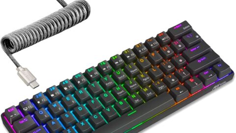 RK ROYAL KLUDGE RK61 60% Mechanical Keyboard with Coiled Cable, 2.4Ghz/Bluetooth/Wired, Wireless Bluetooth Mini Keyboard 61 Keys, RGB Hot Swappable Blue Switch Gaming Keyboard with Software – Black