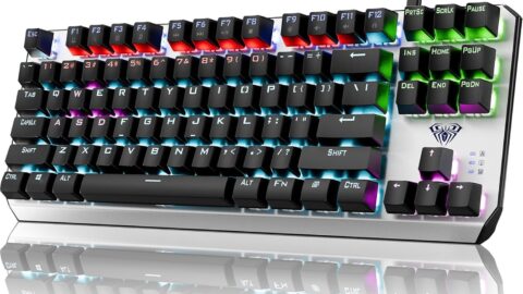 AULA Keyboard, TKL Mechanical Gaming Keyboard with RGB Backlit, All-Metal Panel Wired Keyboard, N-Key Anti-Ghosting Keyboard Gaming Red Switches with Programmable Keys for MAC Xbox PC Gamer, 87 Keys