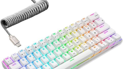 RK ROYAL KLUDGE RK61 60% Mechanical Keyboard with Coiled Cable, 2.4Ghz/Bluetooth/Wired, Wireless Bluetooth Mini Keyboard 61 Keys, RGB Hot Swappable Red Switch Gaming Keyboard with Software – White