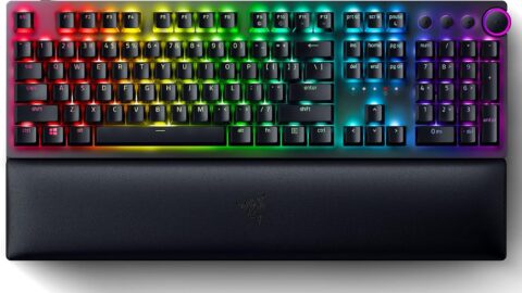 Razer Huntsman V2 Optical Gaming Keyboard: Fast Clicky Optical Switches w/Quick Keystrokes & 8000Hz Polling Rate – Doubleshot PBT Keycaps – Dedicated Media Keys & Dial – Ergonomic Wrist Rest