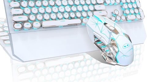 RedThunder K10 Wireless Gaming Keyboard and Mouse Combo, LED Backlit Rechargeable 3800mAh Battery, Mechanical Feel Anti-ghosting Keyboard + 7D 3200DPI Mice for PC Gamer (White)