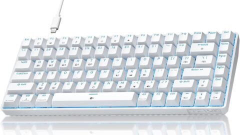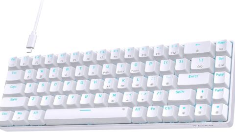MageGee 60% Mechanical Gaming Keyboard, 68 Keys Compact Blue LED Backlit Gaming Keyboard, SKY68 Wired Ergonomic Mini Office Keyboard for Windows PC Gamer (Red Switch, White & Black)