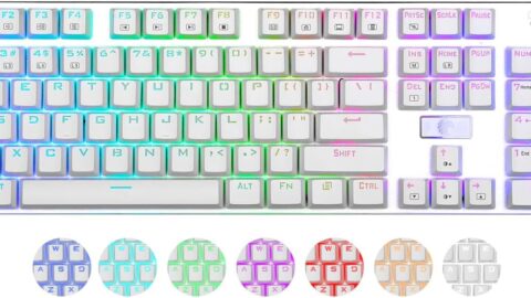 HUO JI E-Yooso Z-88 RGB Mechanical Gaming Keyboard USB Wired, Customizable RGB Backlit, Blue Switches – Clicky, Metal Panel, 104 Keys for Mac, PC, Silver+White