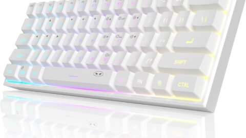 MageGee Mini 60% Gaming Keyboard, Upgrade RGB Backlit 61 Key Ultra-Compact Keyboard, TS91 Ergonomic Waterproof Mechanical Feeling Office Computer Keyboard for PC, MAC, PS4, Xbox ONE Gamer(White)