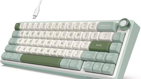 RK ROYAL KLUDGE R65 Wired Mechanical Keyboard with Volume Knob, 60% Percent RGB Backlit Gasket Mount Gaming Keyboard with PBT Keycaps, MDA Profile, QMK/VIA, 66 Keys Hot Swappable Cream Switch, Cyan