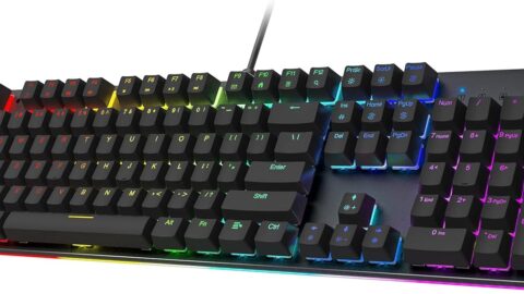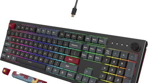 RK ROYAL KLUDGE RK920 Full Size Mechanical Keyboard, Rainbow Backlit Gaming Keyboard, 104 Keys Wired Mechanical Keyboard with Number Pad, Quite Red Switch