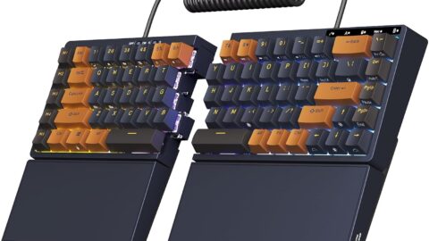 RK ROYAL KLUDGE RKS70 Wireless Gaming Keyboard, Split Bluetooth/2.4G/Wired RGB Mechanical Keyboard with 5 Dedicated Macro Keys, 75% Hot Swappable Ergonomic Keyboards for Win/Mac, Brown Switches Black
