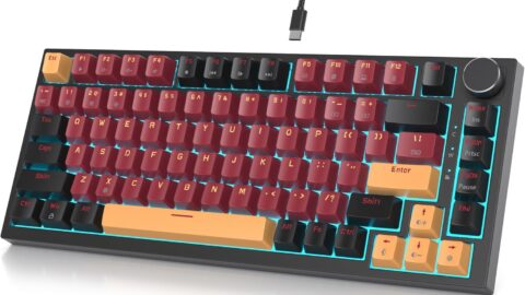 Fogruaden Wired 75% Percent Hot Swappable Mechanical Keyboard, Red Switch, TKL Mechanical Keyboard, Gasket Mount, RGB Backlit Compact Gaming Keyboard with Volume Knob(RedSamurai)