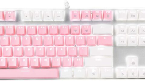 MageGee Mechanical Gaming Keyboard, New Upgraded Blue Switch 104 Keys White Backlit Keyboards, USB Wired Mechanical Computer Keyboard for Laptop, Desktop, PC Gamers(White & Pink)