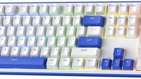 Redragon K685 PRO 104 Keys Wireless Gasket RGB Gaming Keyboard, 3-Modes 100% Layout Mechanical Keyboard w/Hot-Swap Socket, Sound Absorbing Pads & Linear Red Switch, Klein Blue & Oia White