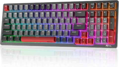 Wireless Mechanical Keyboard,Triple-Mode 2.4G/USB-C/Bluetooth Gaming Keyboard with RGB Backlit,Efficient Numeric Pad,Red Switches,94 Keys Metal Base PBT Compact Quiet Wired Keyboard for PC Mac iPad
