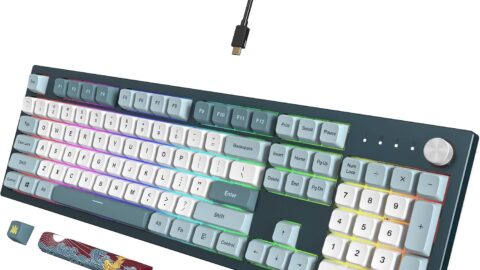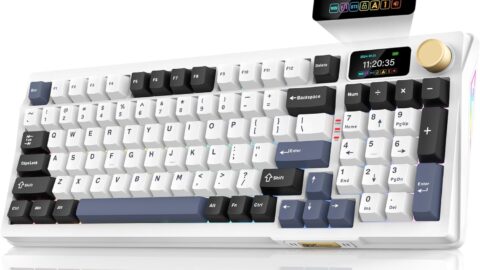 RedThunder K95 Wireless Mechanical Keyboard, TFT Screen & Knob, Tri-Mode BT5.0/2.4GHz/USB-C Hot Swappable Custom, Pre-lubed Linear Switches, Gasket Structure, RGB Gaming Keyboard, Snowy White-Blue