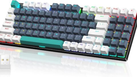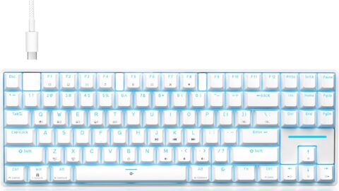 TMKB T84SE Gaming Keyboard,75% Mechanical Keyboard with Linear Red Switch,Ice Blue LED Backlit, Detachable USB-C Cable,Full-Key Rollover for Computer/PC/Laptop/MAC,US Layout,White