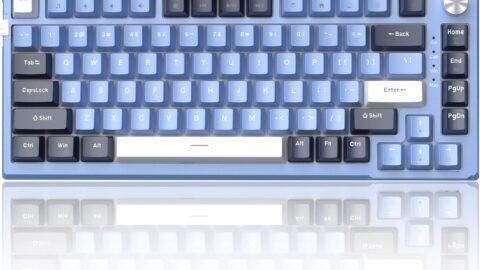 MageGee SKY81 75% Mechanical Gaming Keyboard, Gasket Hot Swappable Wired Custom Creamy Keyboard w/ 5-Layer Sound Padding, Knob Control, RGB Backlit, NKRO for Win/Mac (Prussian Blue, Blue Whale Switch)