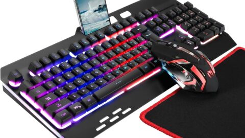Keyboard and Mouse Gaming LED Wired Combo with Emitting Character Keyboard 4800DPI 2 Side Button USB Mouse Rainbow Backlit Mechanical Feeling Compatible with PC Raspberry Pi Mac Xbox one ps4