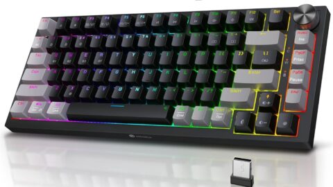 KOORUI 75% Wireless RGB Gaming Keyboard,3 Mode BT/2.4Ghz/USB-C Hot Swappable Mechanical Keyboard,Compact 82 Keys Gaming Keyboard with 4000mAh Battery & Dedicated Knob Control,Linear Red Switch