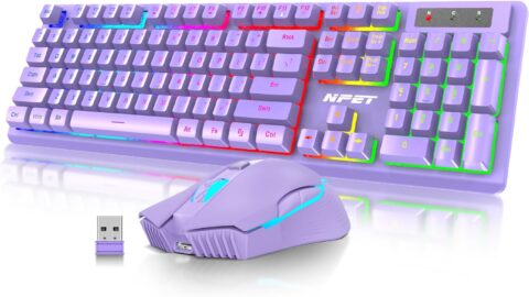 NPET S21 Wireless Gaming Keyboard and Mouse Combo, RGB Backlit Quiet Ergonomic Mechanical Feeling Keyboard, for Desktop(Purple)