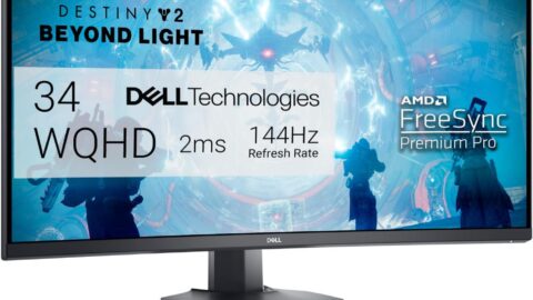 Dell S3422DWG Curved Gaming Monitor – 34 Inch 1800R Curved Screen with 144Hz Refresh Rate, WQHD (3440 x 1440) Display, HDMI, DP to DP 1.4 Cable, AMD FreeSync – Black