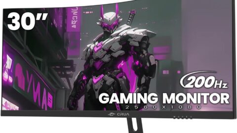 CRUA 30″ Curved Gaming Monitor, 144Hz(HDMI)/200Hz(DP) Ultrawide Computer Monitor, WFHD(2560 * 1080P) VA Screen,21:9,1500R,99% sRGB, PC Monitors Support FreeSync, Support Wall Mount- Black