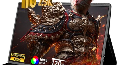 Portable Monitor 2.5K 2560×1600 QHD 16 Inch,120Hz IPS Display,16:10 Ultra Wide Screen,HDMI USB-C Computer Gaming Monitor for Laptop Mac Phone Tablet PS4 PS5 Switch Xbox Game Console,Dual Speakers,VESA