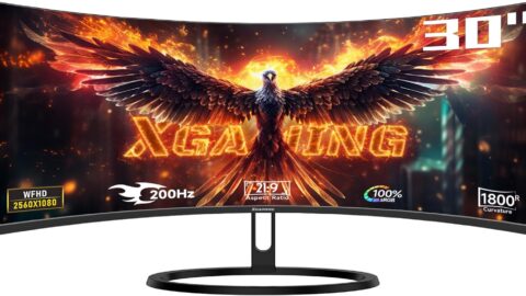 Curved Monitor – 30 Inch Ultra Wide Monitor 200Hz WFHD, 1800R Curved Computer Monitor 2560 x 1080p, 100% sRGB, FreeSync, Dual Speakers, HDMI&DP Display, VESA, Black Monitor With Rainbow Lights