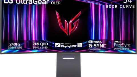 LG 34GS95QE 34-inch Ultragear OLED Curved Gaming Monitor WQHD 800R 240Hz 0.03ms DisplayHDR True Black 400 AMD FreeSync Premium Pro NVIDIA G-Sync HDMI 2.1 DisplayPort Tilt/Height/Swivel Stand Black