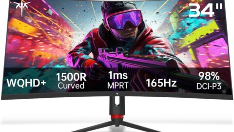 34 Inch Ultrawide Curved Gaming Monitor, 1500R PC Screen 165hz UWQHD 3440×1440, Curved Computer Screen with FreeSync,Multi-Directional Adjustable Base