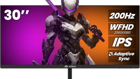 CRUA 30-inch Gaming Monitor 200HZ, 21:9 WFHD(2560X1080P) Ultrawide Computer Monitor, IPS Screen,100% sRGB, PIP/PBP, HDMI 2.0 & Displayport 1.4,Support FreeSync,Wall Mountable/Tilt Adjustable- Black