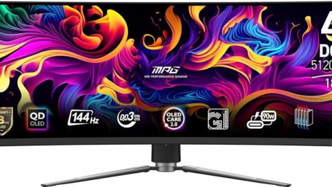 MSI MPG 491CQP QD-OLED, 49 Curved OLED Gaming Monitor, 5120 x 1440 (DQHD), OLED 0.03ms Response time, 144Hz, True Black HDR 400, HDMI, DP Port, USB Type C, Tilt, Height