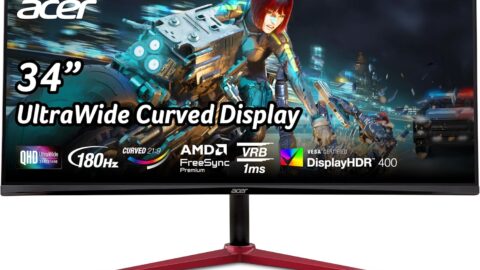 Acer Nitro 34″ UWQHD 3440 x 1440 1500R Curved PC Gaming Monitor | AMD FreeSync Premium | Up to 180Hz Refresh | 1ms (VRB) | 400nit | DisplayHDR 400 | 1 x DP 1.4 & 2 x HDMI 2.0 | XZ342CU Vbmiiphx