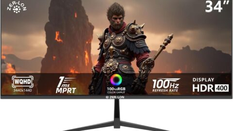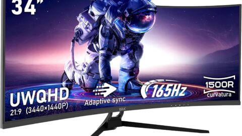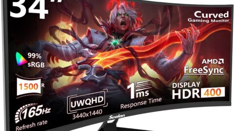 ZZA 34″ UltraWide Curved QHD Monitor – Immersive Gaming Experience with 165Hz Refresh Rate, VA Panel, and AMD FreeSync Premium | HDR10 | 99% sRGB | 3440×1440