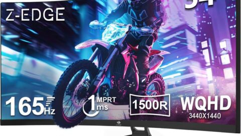 Z-Edge UG34 34″ Ultrawide 2K Curved Gaming Monitor with 165Hz Refresh Rate, 21:9 Aspect Ratio, 1ms MPRT, 3440×1440 Resolution, 1500R Curvature, VA Panel, 178 Viewing Angles, AMD Freesync