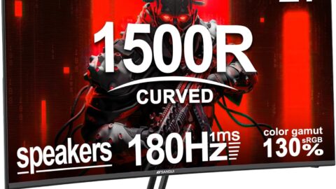 SANSUI 27 Inch Curved Gaming Monitor 180Hz 1ms with Speakers FHD 1080P Computer Monitor FreeSync|1500R|130% sRGB|HDR|Low Blue Light|HDMI DP Ports|VESA Mount|Metal Stand(ES-G27C1 HDMI Cable Included)