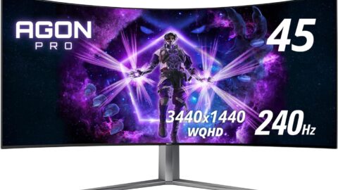 AOC Agon PRO AG456UCZD 45” Ultra Wide Curved OLED Gaming Monitor, 21:9 WQHD 3440×1440, 240Hz 0.03ms, FreeSync Premium, 800R, USB-C Docking, Frameless, PS5/Switch/Xbox; Light FX, Height Adjustable