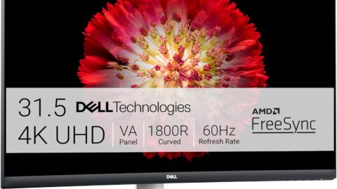 Dell S3221QS 32 Inch Curved 4K UHD (3840 x 2160), VA Ultra-Thin Bezel Monitor, 60Hz, 4MS Response Time, 90% DCI-P3, 99% sRGB, AMD FreeSync, HDMI, DisplayPort, Built in Speakers, VESA Certified, Silver