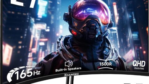 27 Inch Curved Monitor, QHD 2560 x 1440p 165Hz 2K Gaming Computer Monitor, 1ms, 98% sRGB HDR 16:9 Wide Display, 1500R Curved, FreeSync, Eye Care, Built-in Speakers, HDMI DisplayPort,VESA, Adjustable