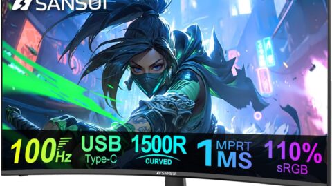 SANSUI Curved Monitor 27 inch 100Hz USB Type-C Computer Monitor with Speakers Built in丨FHD 1080p丨HDR丨110% sRGB丨1500R丨VESA Compatible,for Tablet,Desktop,Laptop and PC Work Gaming (ES-27C1)