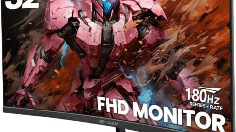 CRUA 32Inch Gaming Monitor, FHD(1920 * 1080P) VA Screen 144Hz/180Hz Curved Monitor, 1800R, 100% sRGB, Computer Monitor That Support AMD Freesync, HDMI, DP, Wall Mountable Installs-Black