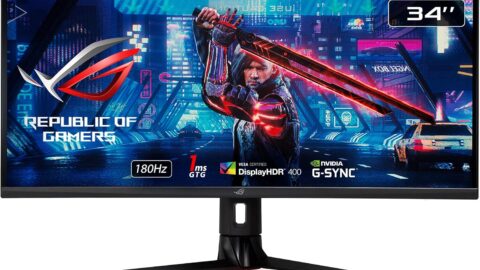 ASUS ROG Strix 34” Gaming Monitor (XG349C) – UWQHD (3440 x 1440), 180Hz, 1ms, Extreme Low Motion Blur Sync, 135% sRGB, G-Sync Compatible, DisplayHDR 400, Eye Care, USB-C, DisplayPort, HDMI, Black